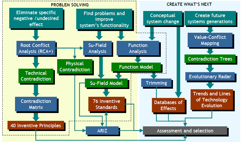 Triz’in problem çözme mantığı ilk olarak iki adımdan başlar. Eğer istenmeyen bir etki varsa ve bunun ortadan kaldırılması isteniyorsa, İstenmeyen etkiyi ortadan kaldırma, eğer sistem geliştirilmek isteniyorsa veya sistemdeki problem çözülmek isteniyorsa, Problemleri Bulma ve Sistemin Fonksiyonelliğini Geliştirme Tekniği kullanılır.